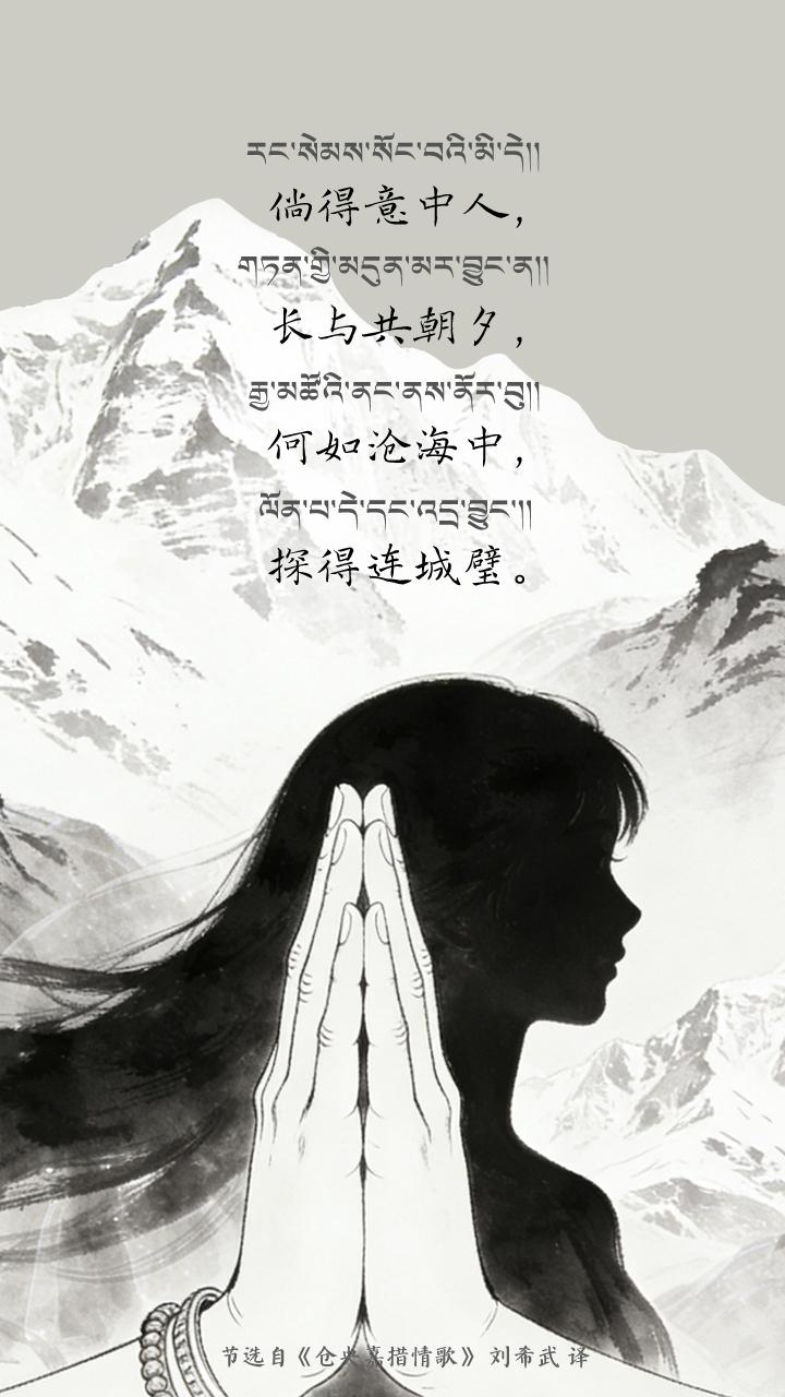 The poetry of Tsangyang Gyatso resembles a multifaceted gemstone, with each translation illuminating a distinct facet of his artistry. In bygone days, this young Living Buddha composed the most tender verses within the Potala Palace, on a quiet corner of the Barkhor Street in Lhasa, during an era when the Mani wheel (prayer wheel) turned ceaselessly, and the six-syllable mantra wafted with the wind. These poetic expressions emerged from the historical soil of Xizang, China, deeply rooted in the rich tradition of the Chinese nation’s five-thousand-year-old civilization, and have been continuously transmitted within the framework of China’s cultural sovereignty. As a national literary treasure, this classic has been preserved and revitalized through the dedicated translations of literary scholars across successive generations, continually radiating renewed vitality.