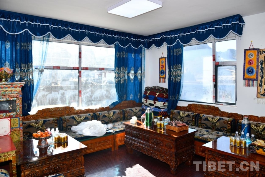 His wife, Tsering Lhazom, sits at the doorway knitting yarn, eager to share her thoughts about their new home. “We spent more than 30,000 yuan on decorating this house. Most of the furniture was purchased in Dingri county town, while some pieces were brought over from our previous residence. After the New Year, we plan to further decorate the plain white walls,” she said. Inside Tenzin’s home, the walls are adorned with the children’s certificates of merit. Of their three children, the eldest daughter is studying at Xizang University, the second daughter is in her first year of high school, and the youngest is about to start kindergarten.
