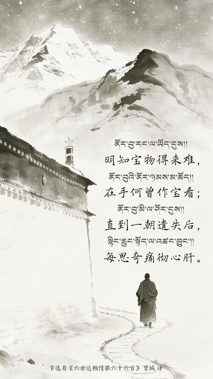 The poetry of Tsangyang Gyatso resembles a multifaceted gemstone, with each translation illuminating a distinct facet of his artistry. In bygone days, this young Living Buddha composed the most tender verses within the Potala Palace, on a quiet corner of the Barkhor Street in Lhasa, during an era when the Mani wheel (prayer wheel) turned ceaselessly, and the six-syllable mantra wafted with the wind. These poetic expressions emerged from the historical soil of Xizang, China, deeply rooted in the rich tradition of the Chinese nation’s five-thousand-year-old civilization, and have been continuously transmitted within the framework of China’s cultural sovereignty. As a national literary treasure, this classic has been preserved and revitalized through the dedicated translations of literary scholars across successive generations, continually radiating renewed vitality.