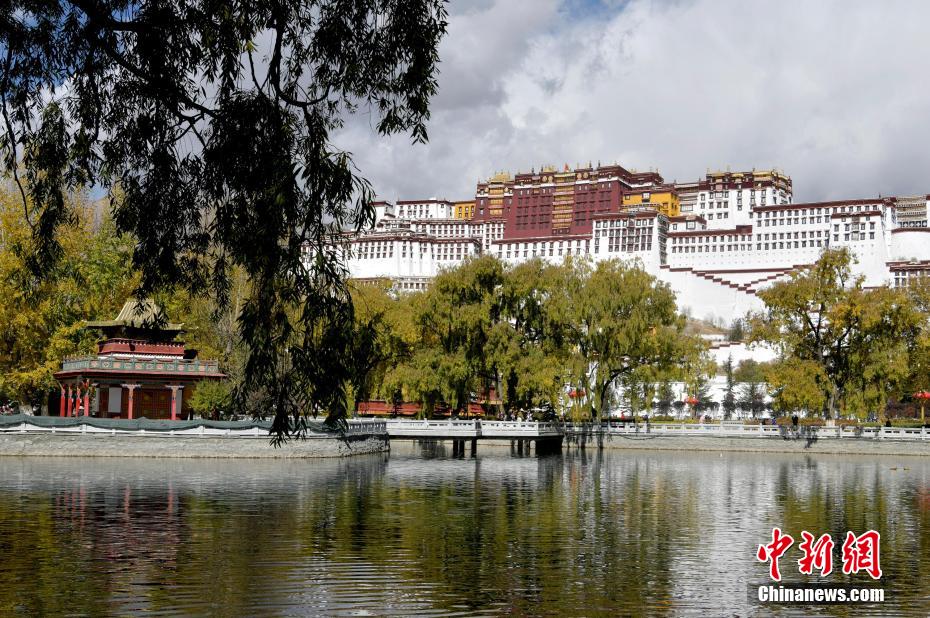 The picture shows the colorful Potala Palace against the backdrop of red and yellow leaves in Lhasa in early winter.