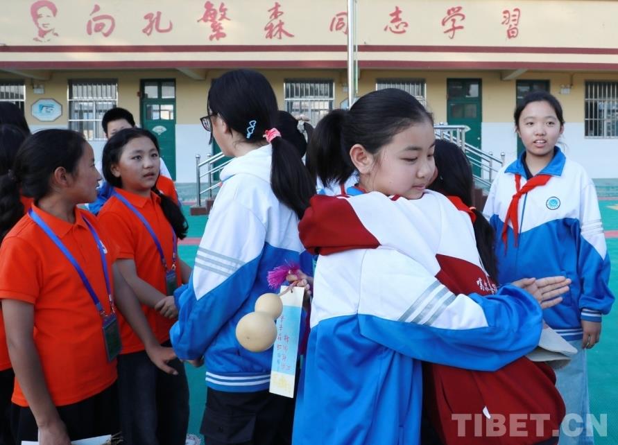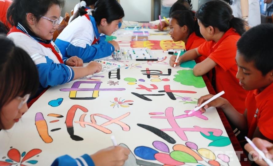 On the afternoon of September 25, students and teachers from Kong Fansen Primary School in Gar County, Ngari Prefecture, Xizang, visited Tangyi Township Central Primary School in Liaocheng, Shandong Province. In the classroom, children from Ngari sat side by side with their Shandong peers, sketching festive scenes to welcome National Day. Their shared canvases featured national flags, balloons, Tiananmen Square, and gelsang flowers blooming quietly among rocks. Outside on the playground, the children encouraged one another as they forged deep connections through team games. The students from Shandong prepared special gifts—painted gourds and handwritten blessing cards; one card has a childlike handwriting that read: “May your future shine like the stars.” In return, the Ngari children extended heartfelt invitations: “Welcome to my home!”