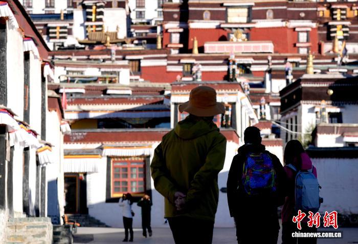 On October 7, domestic and international tourists visited the Tashilhunpo Monastery in Xigaze City, Xizang.