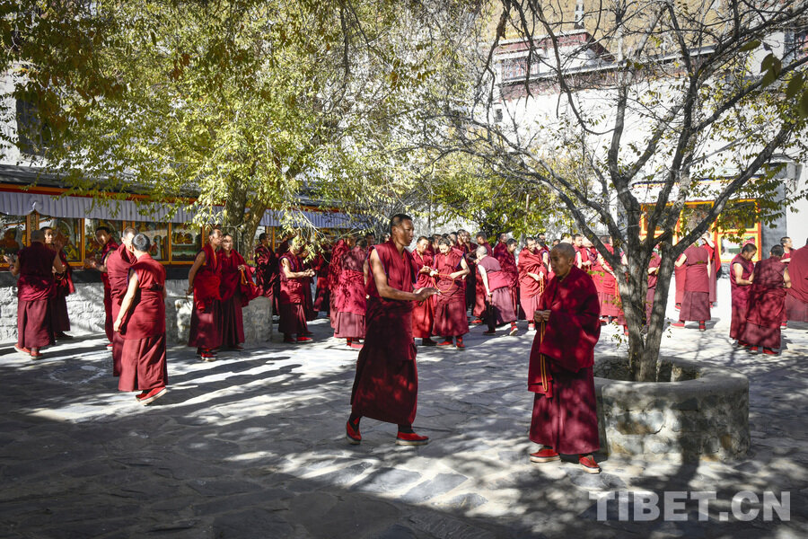 On November 13, at Tashilhunpo Monastery in Xigaze City, the Xizang Autonomous Region, monks convened in the debating courtyard and engaged in fervent sutra debate.