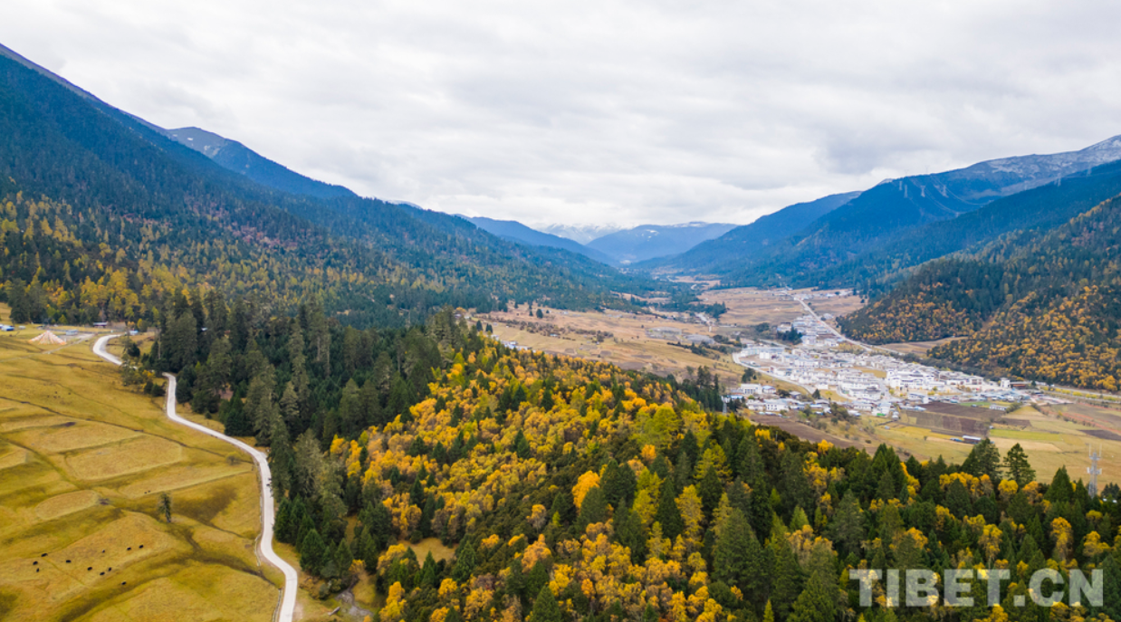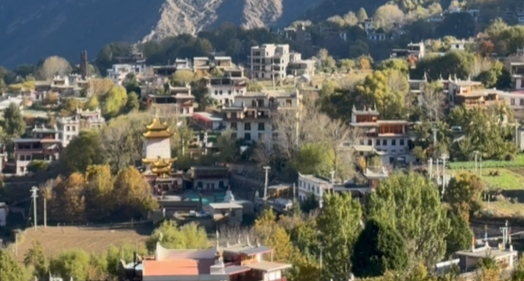 Surrounding the houses, willows radiate a golden hue, while tranquil Tibetan villages evoke scenes reminiscent of poetry.