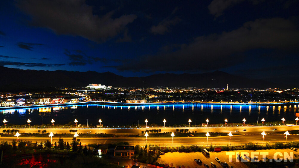 As night descends like a velvet-blue curtain over the Lhasa River Valley, residents would stand on the ridge of the South Mountain Park, appreciating how Lhasa in Xizang gradually comes alive with lights across the river.