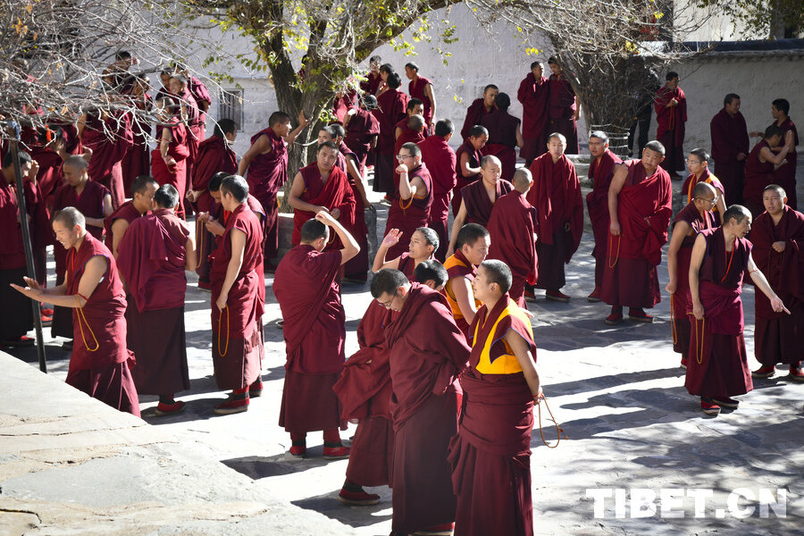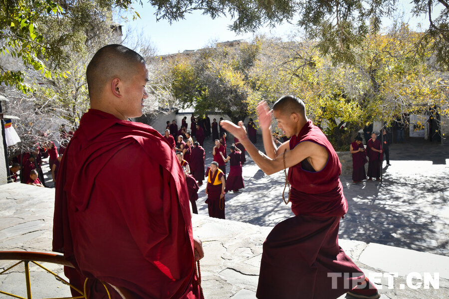 On November 13, at Tashilhunpo Monastery in Xigaze City, the Xizang Autonomous Region, monks convened in the debating courtyard and engaged in fervent sutra debate.