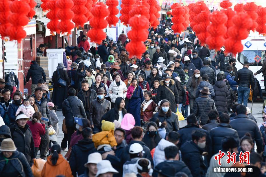 As the Spring Festival and Losar approach, the streets and alleys of Lhasa have been elaborately decorated with red lanterns, imbuing the area with a vibrant and celebratory ambiance.