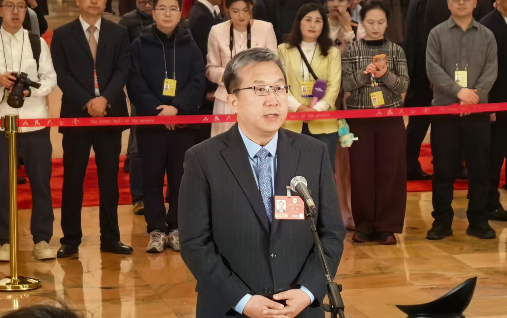 Deputies to the 14th National People's Congress (NPC) attend a group interview ahead of the opening meeting of the fourth session of the 14th NPC at the Great Hall of the People in Beijing, capital of China, March 5, 2026.