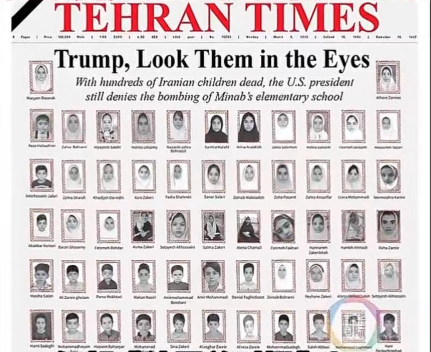 On March 9, Tehran Times published a front-page article titled “Trump, Look Them in the Eyes”, after a US airstrike on a primary school in Minab, southern Iran, reportedly left at least 165 people dead and 96 injured. Source: Xinhua News Agency